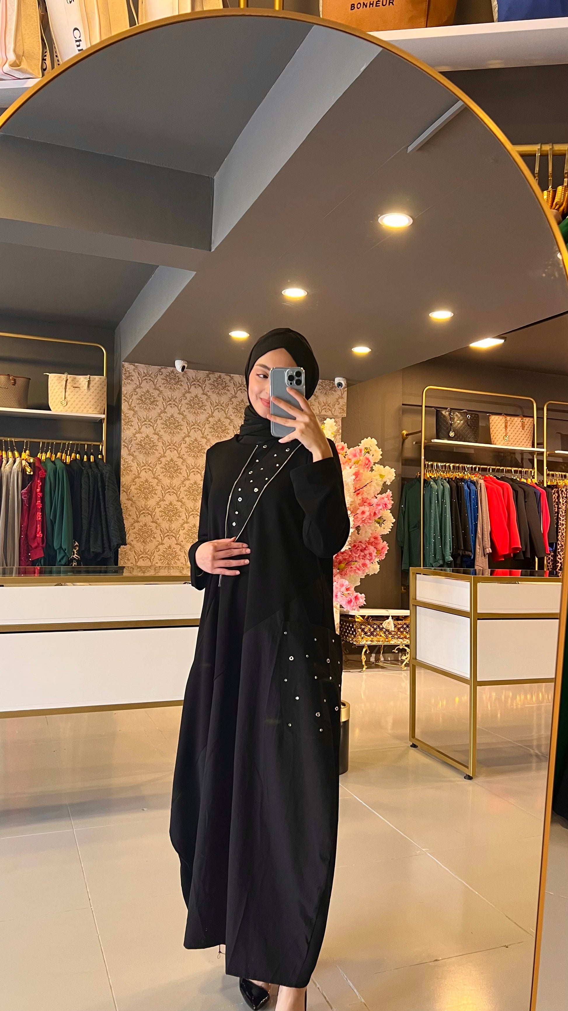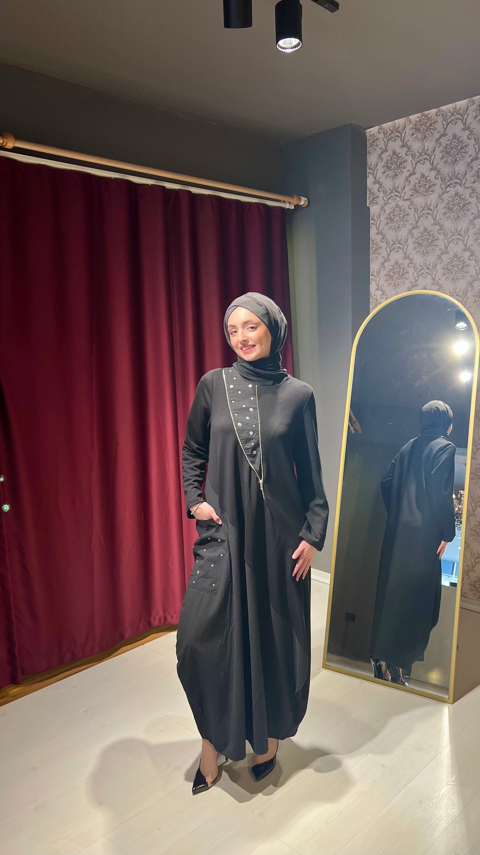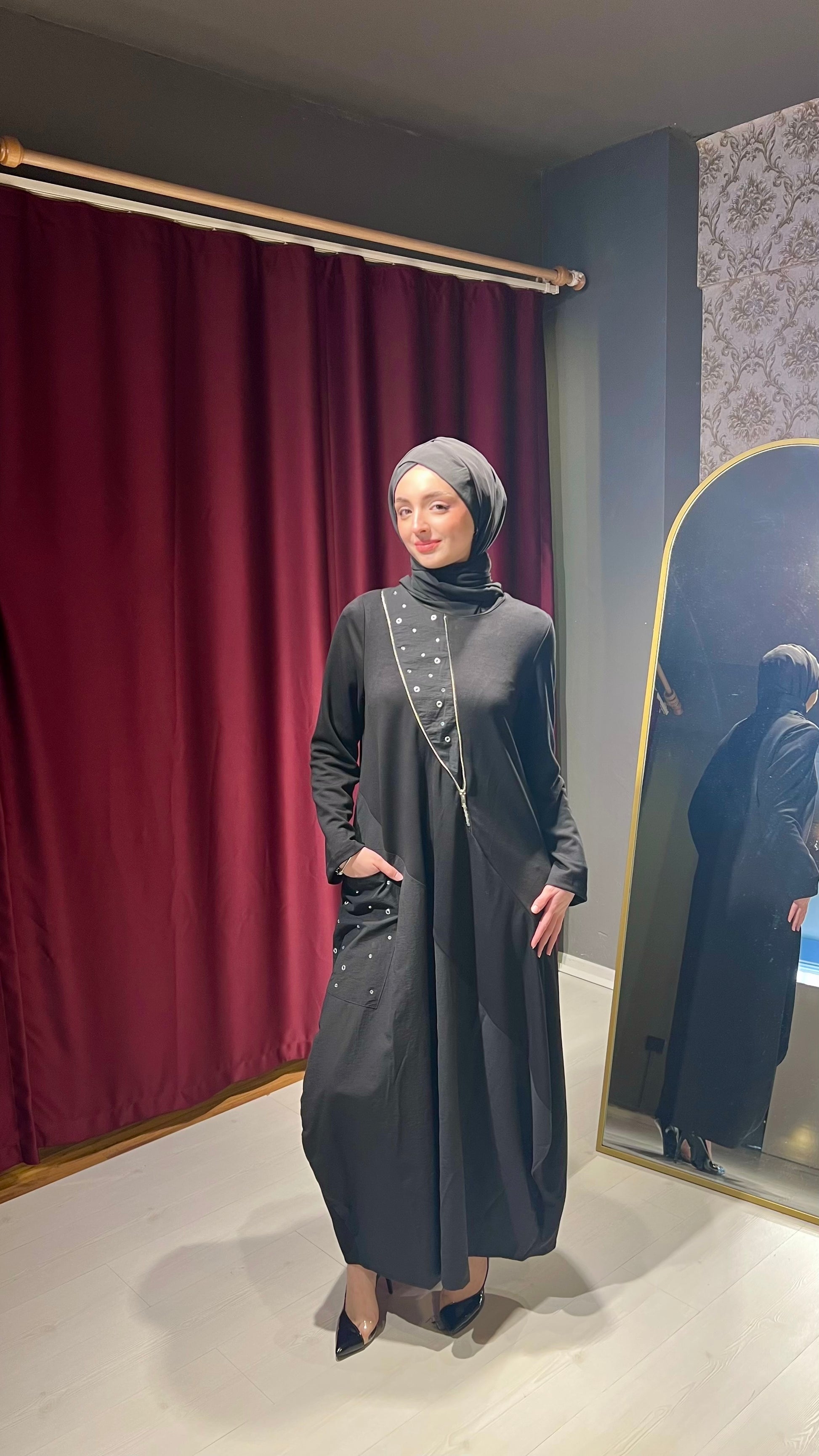 Standart beden olarak tasarlanan bu elbise, vücuda oturmayan rahat kalıbıyla her ölçüye uyum sağlar.